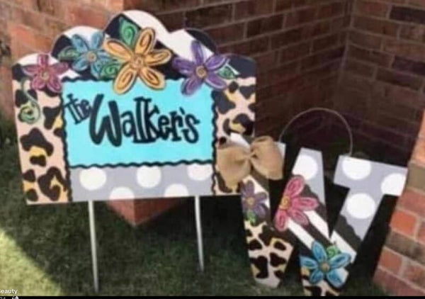 Custom Yard Sign with Matching Inital Door Hanger