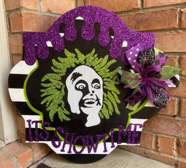 This door hanger ranges from 24-28 inches as I handcut each one. Ribbon will vary depending on availability.